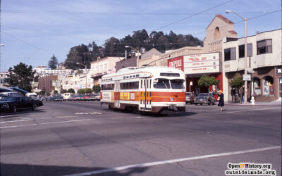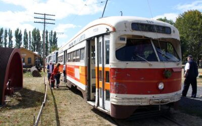 Car # 1159 is one of two former San Francisco MUNI PCC Cars the museum retains. This car was initially built for St. Louis Public Service as # 1726 before being sent to SF in 1957